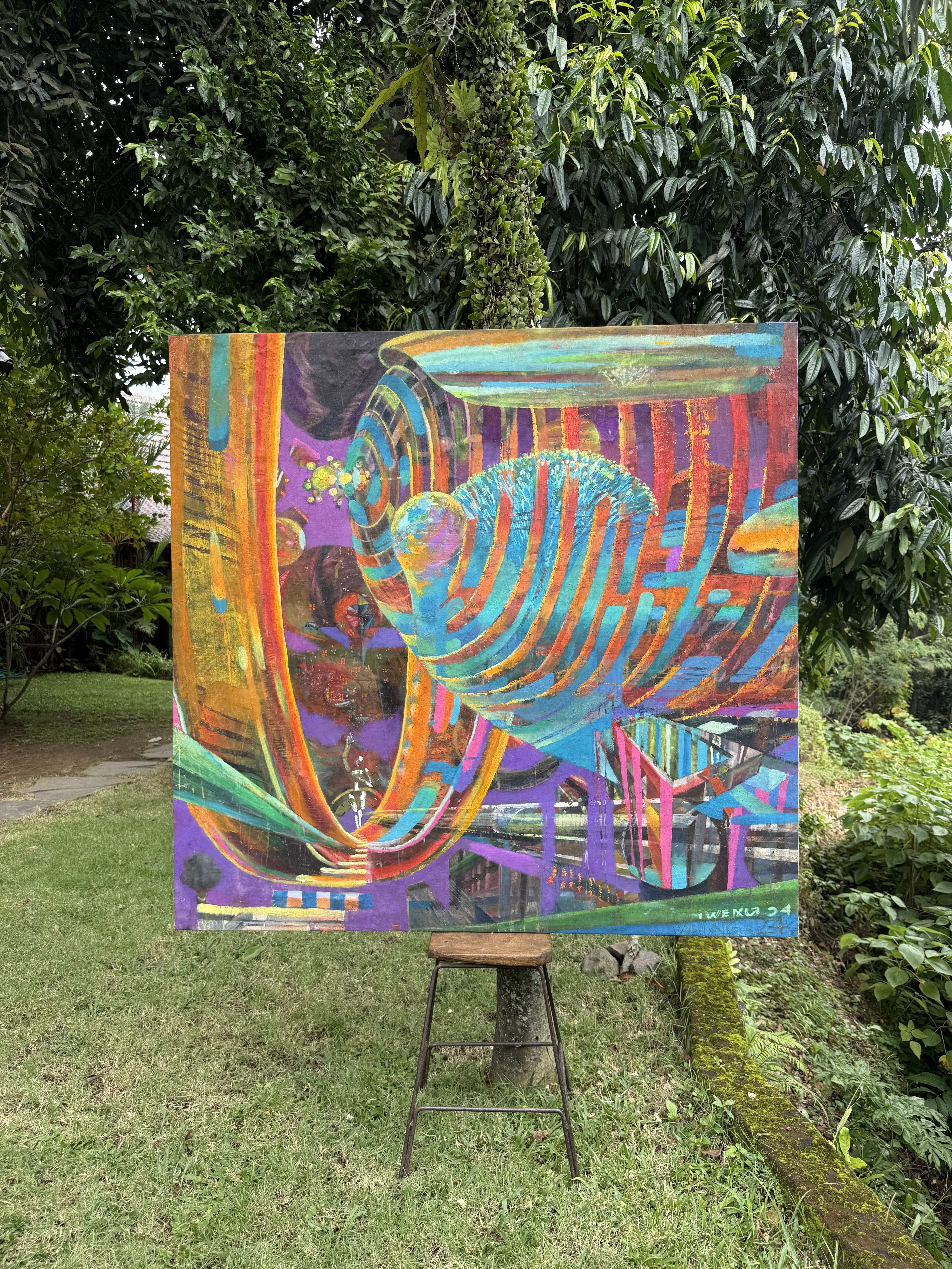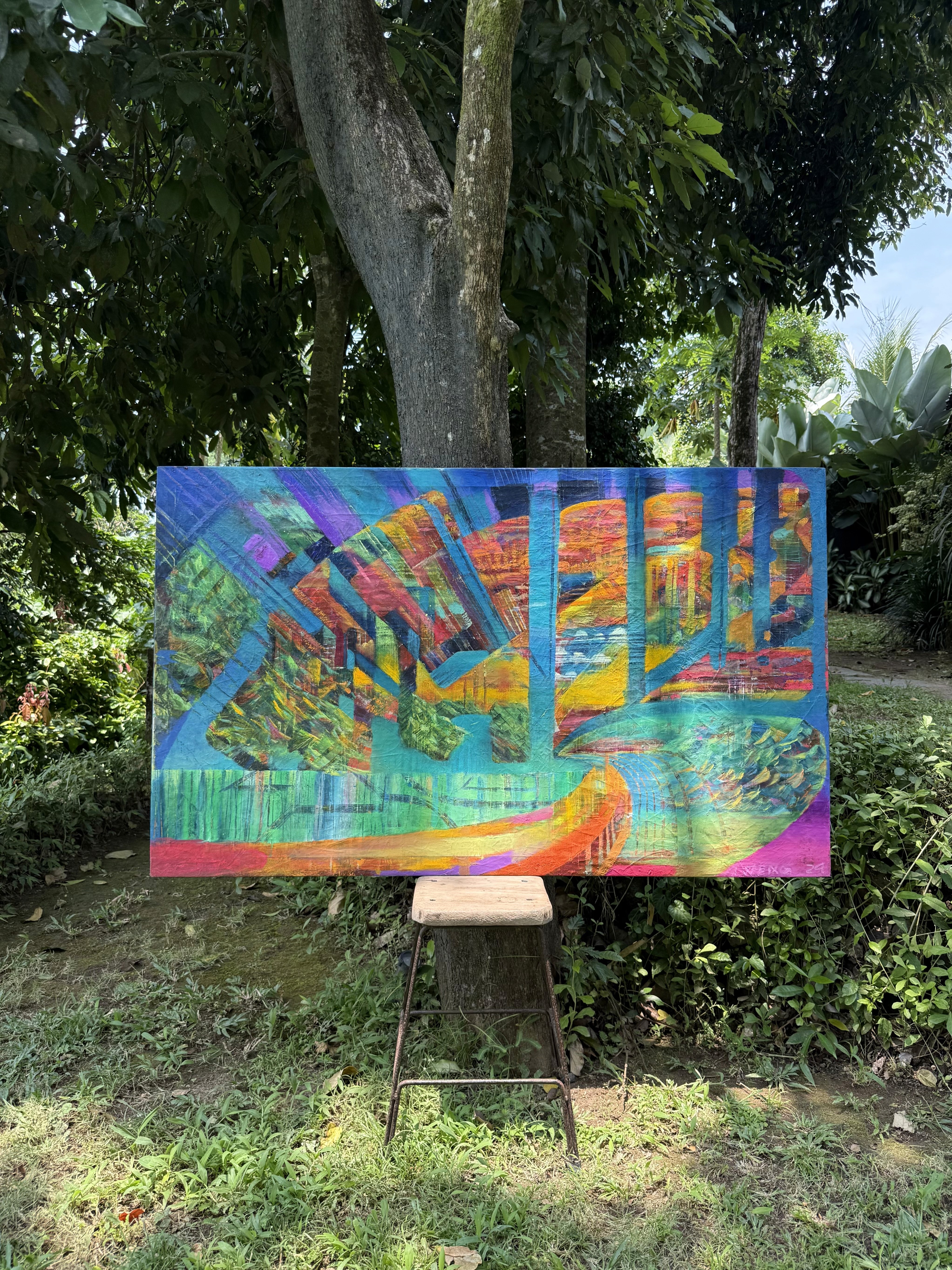Oil and fluorescent pigments on canvas, Private Collection, Open to Offers