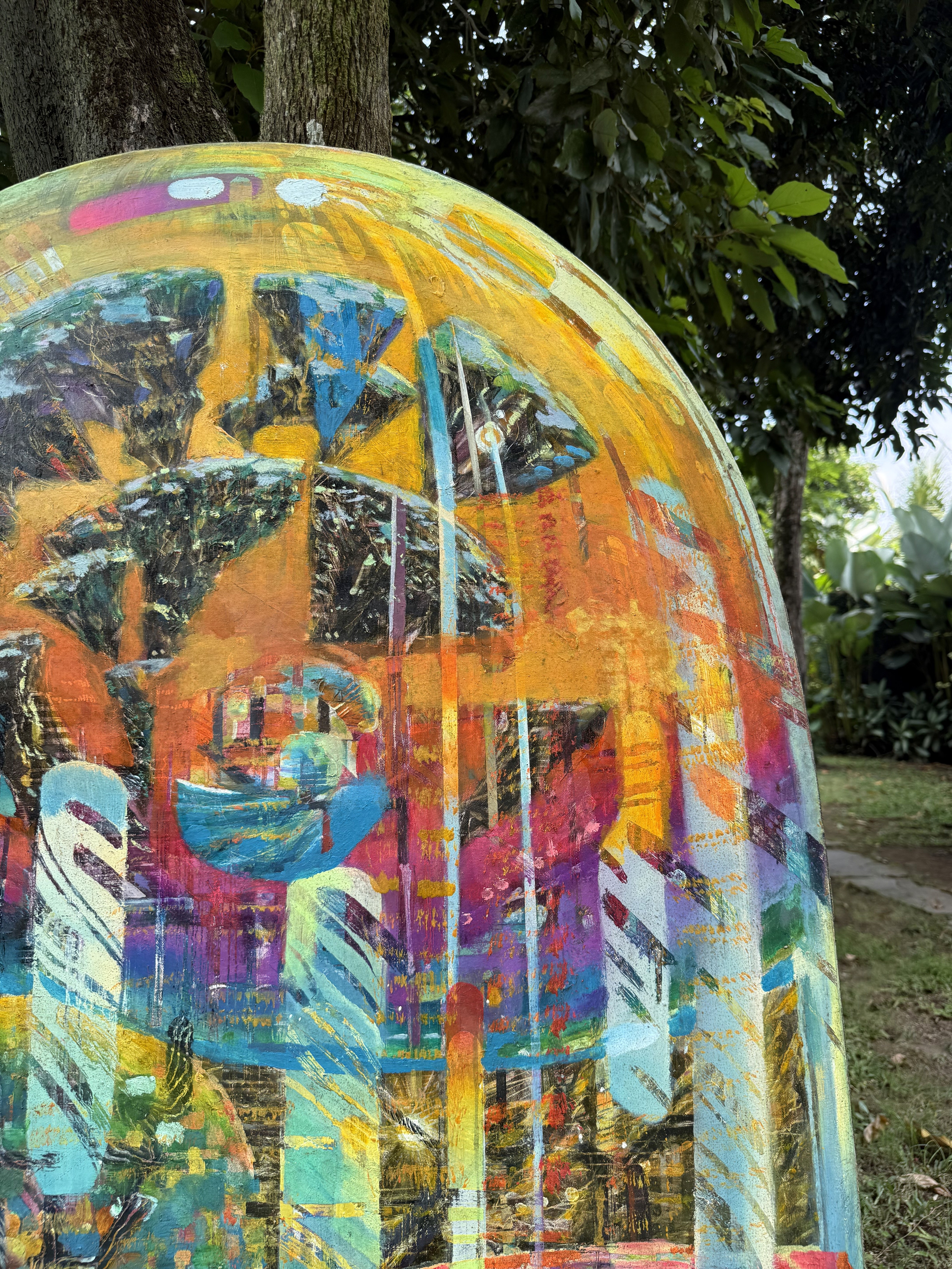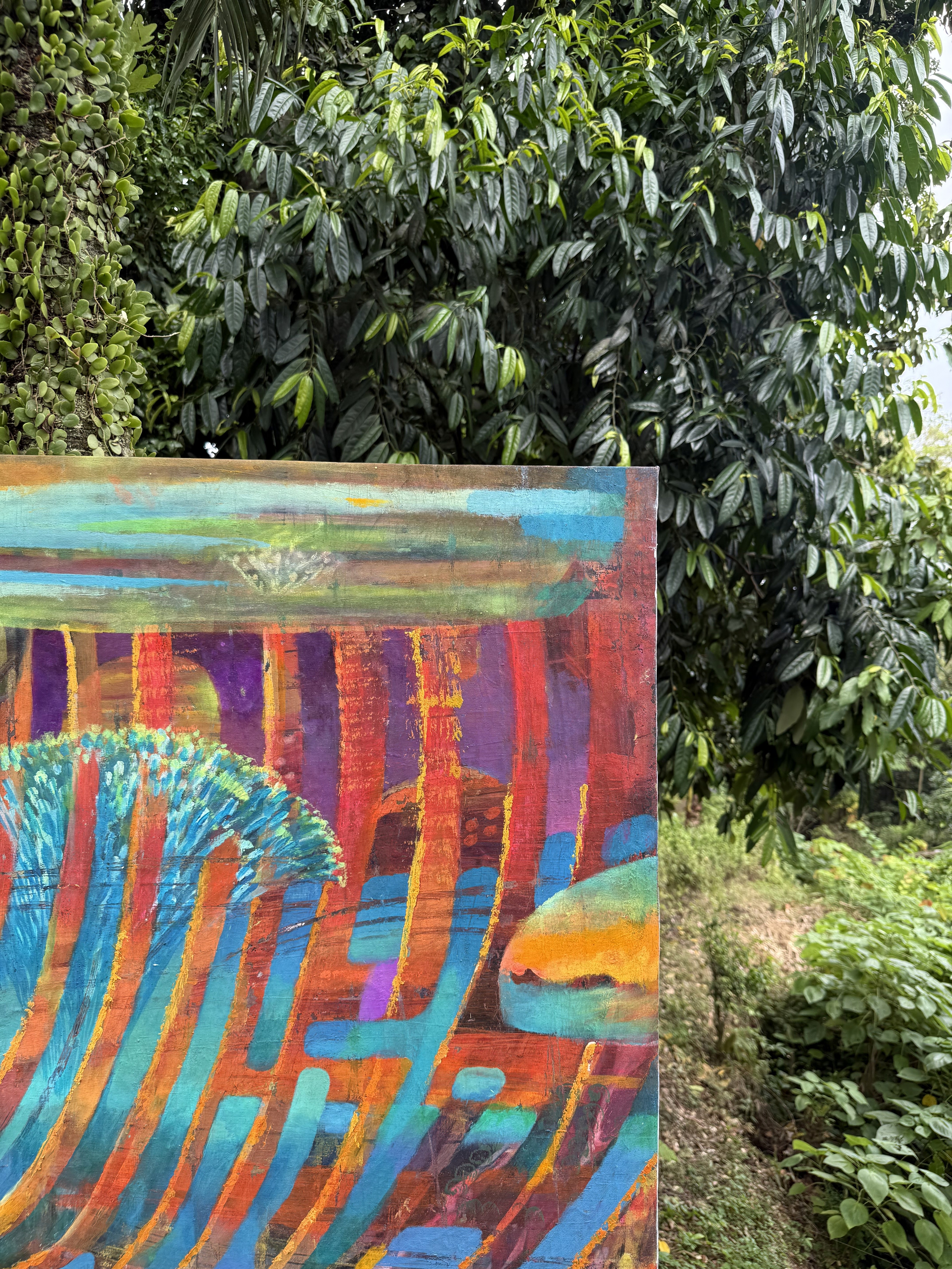Oil and fluorescent pigments on wood, Price upon request