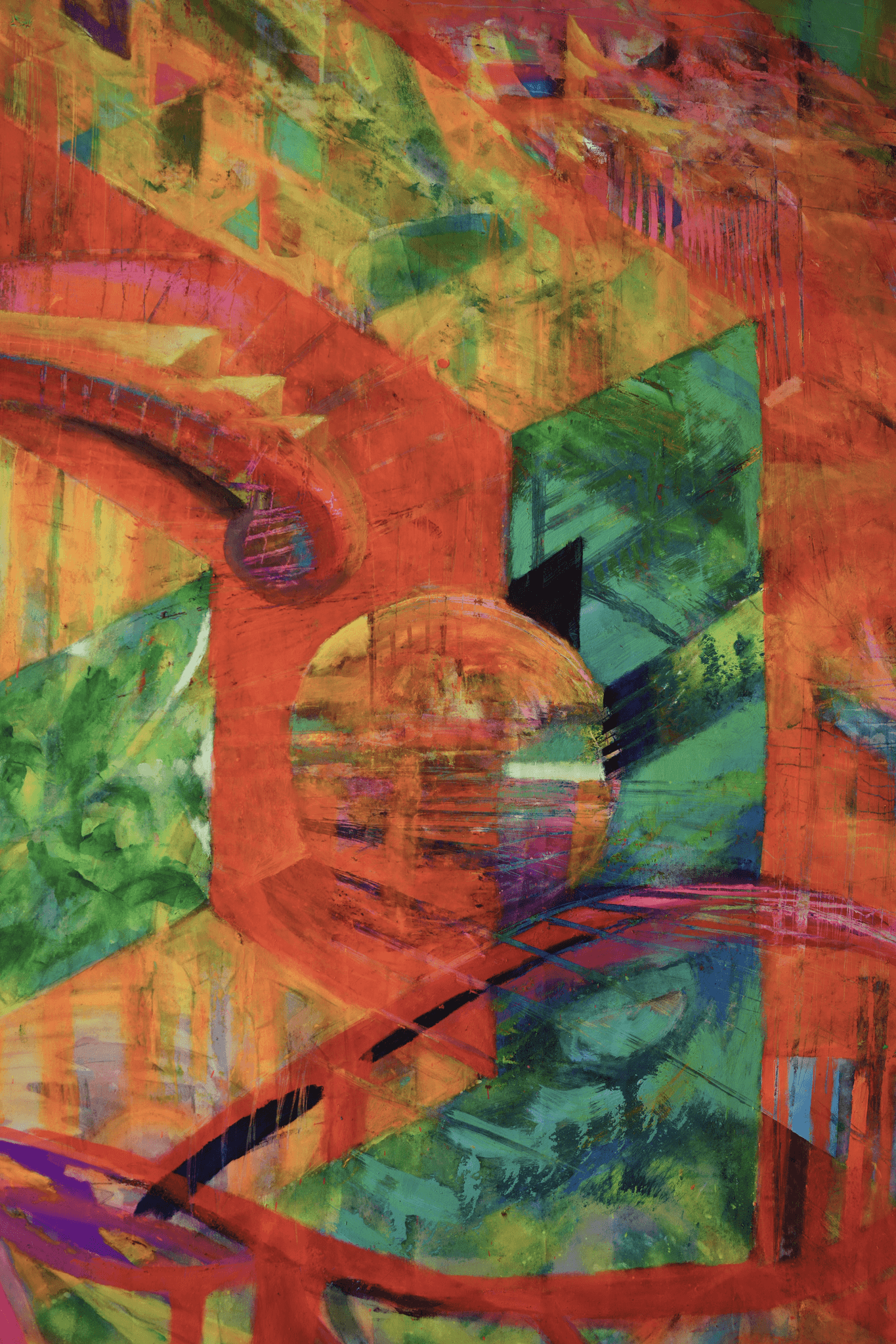 Oil and fluorescent pigments on canvas