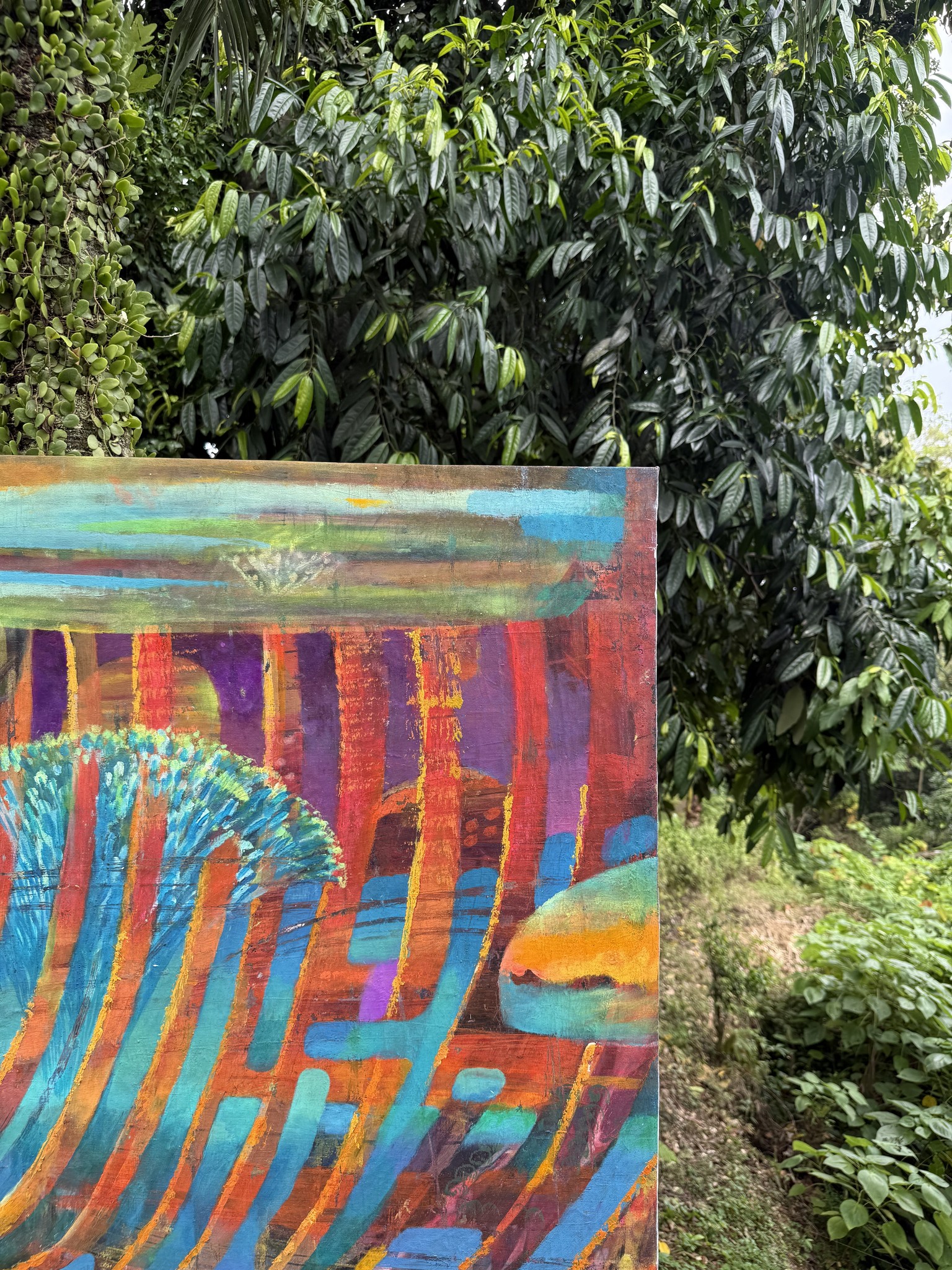 Oil and fluorescent pigments on canvas
