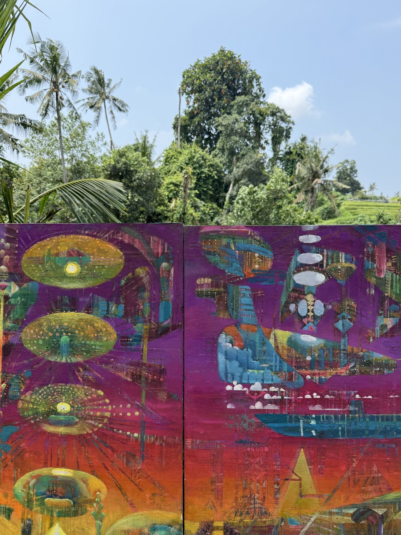 Oil and fluorescent pigments on canvas